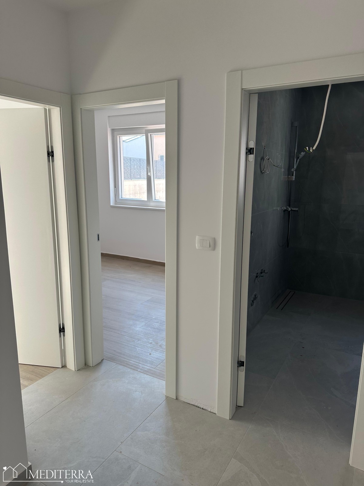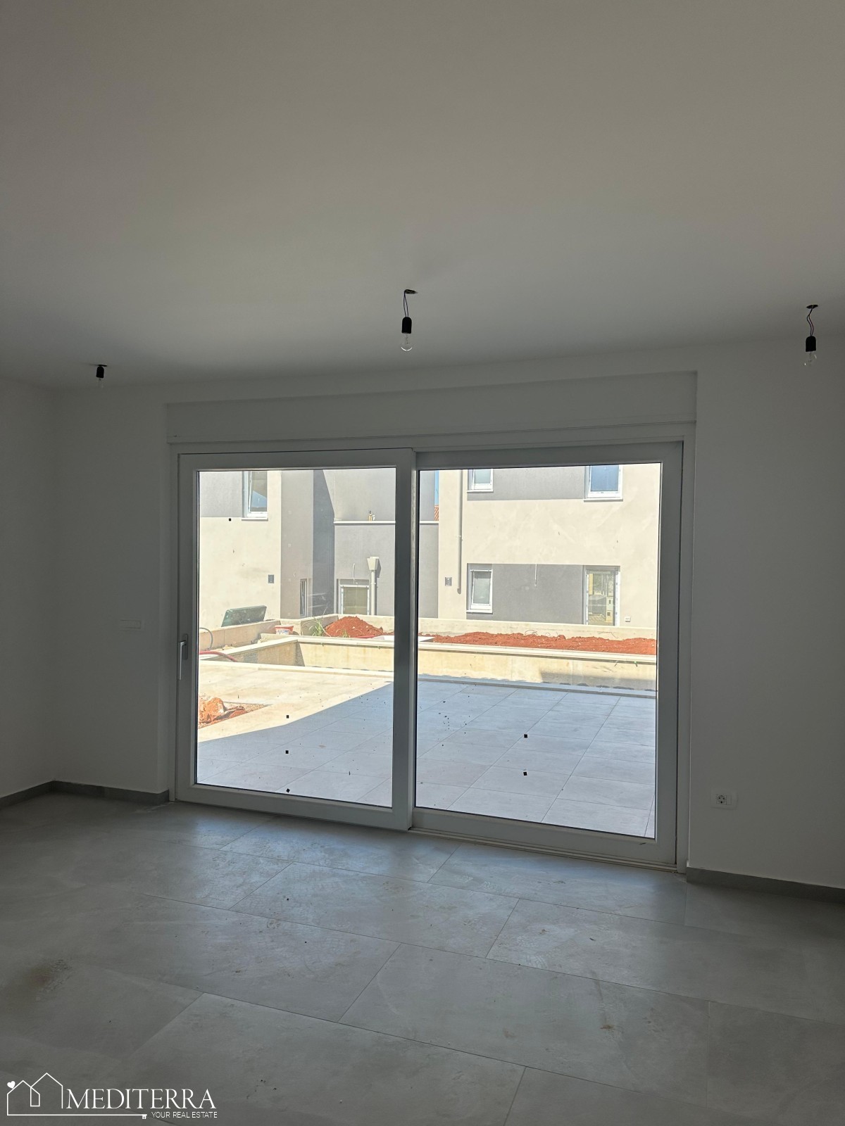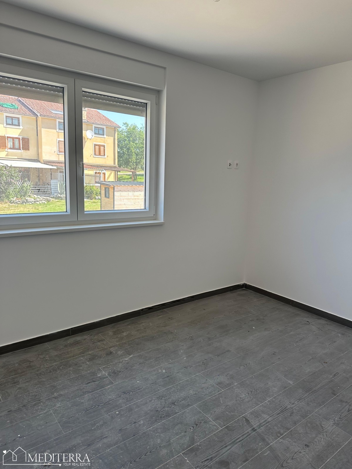 Wohnung im Erdgeschoss in einem kleineren Wohnhaus mit 4 Wohnungen zu verkaufen. Die Wohnung ist 71,95 m2 groß und besteht aus einer Eingangshalle, 2 Schlafzimmern, einem Badezimmer, einem Wohnzimmer mit Küche und einem Esszimmer im „Open Space“-Design, von dem aus man Zugang zu einer überdachten Terrasse und einem Swimmingpool hat ( 21m2). Zur Wohnung gehört 1 Parkplatz!