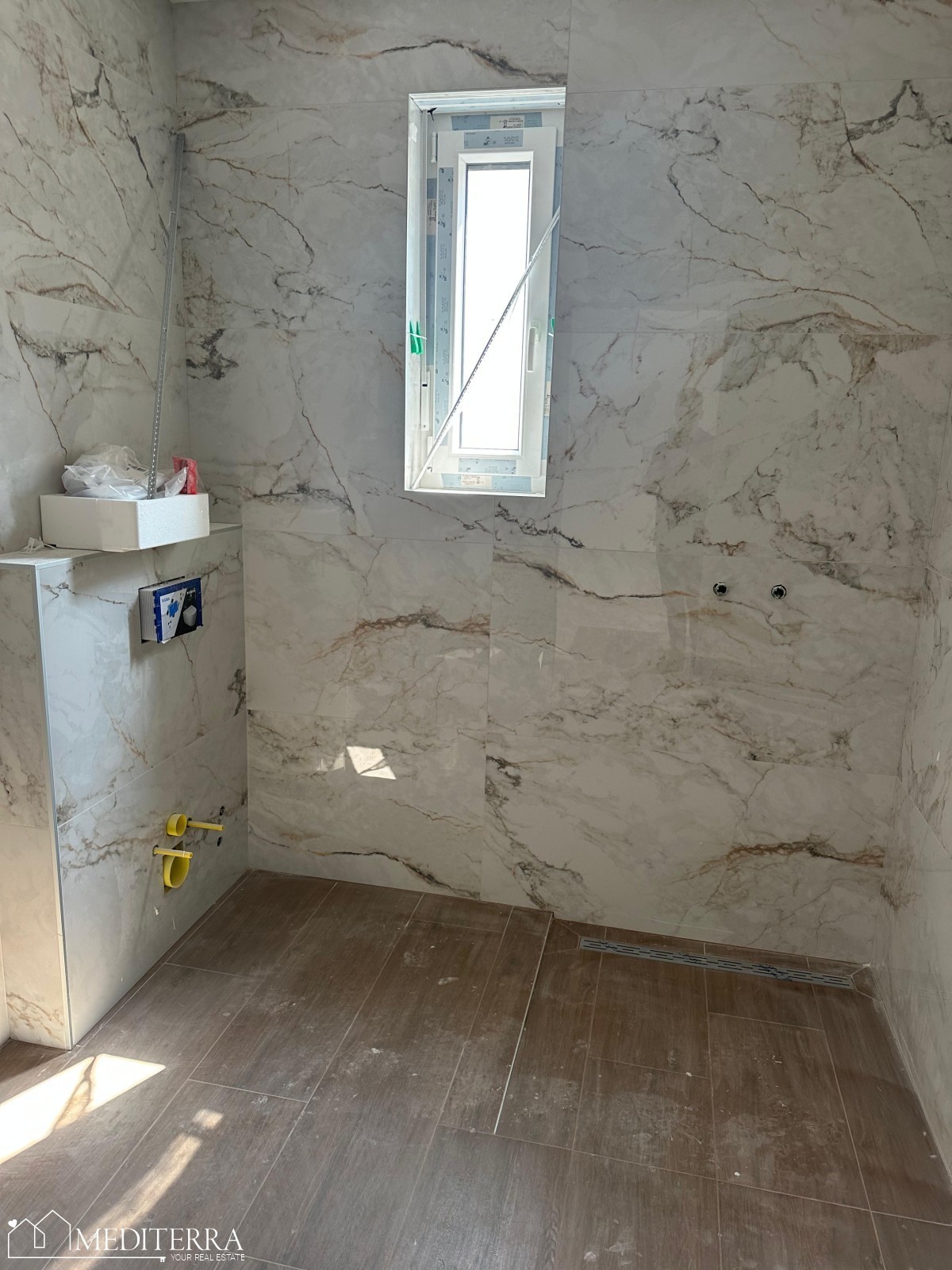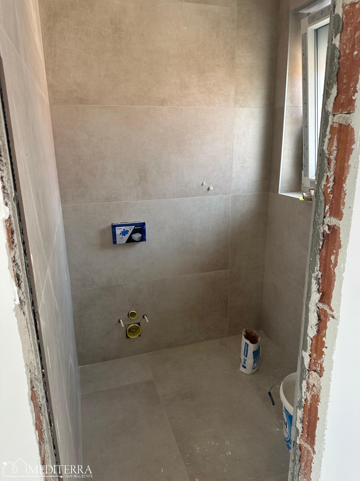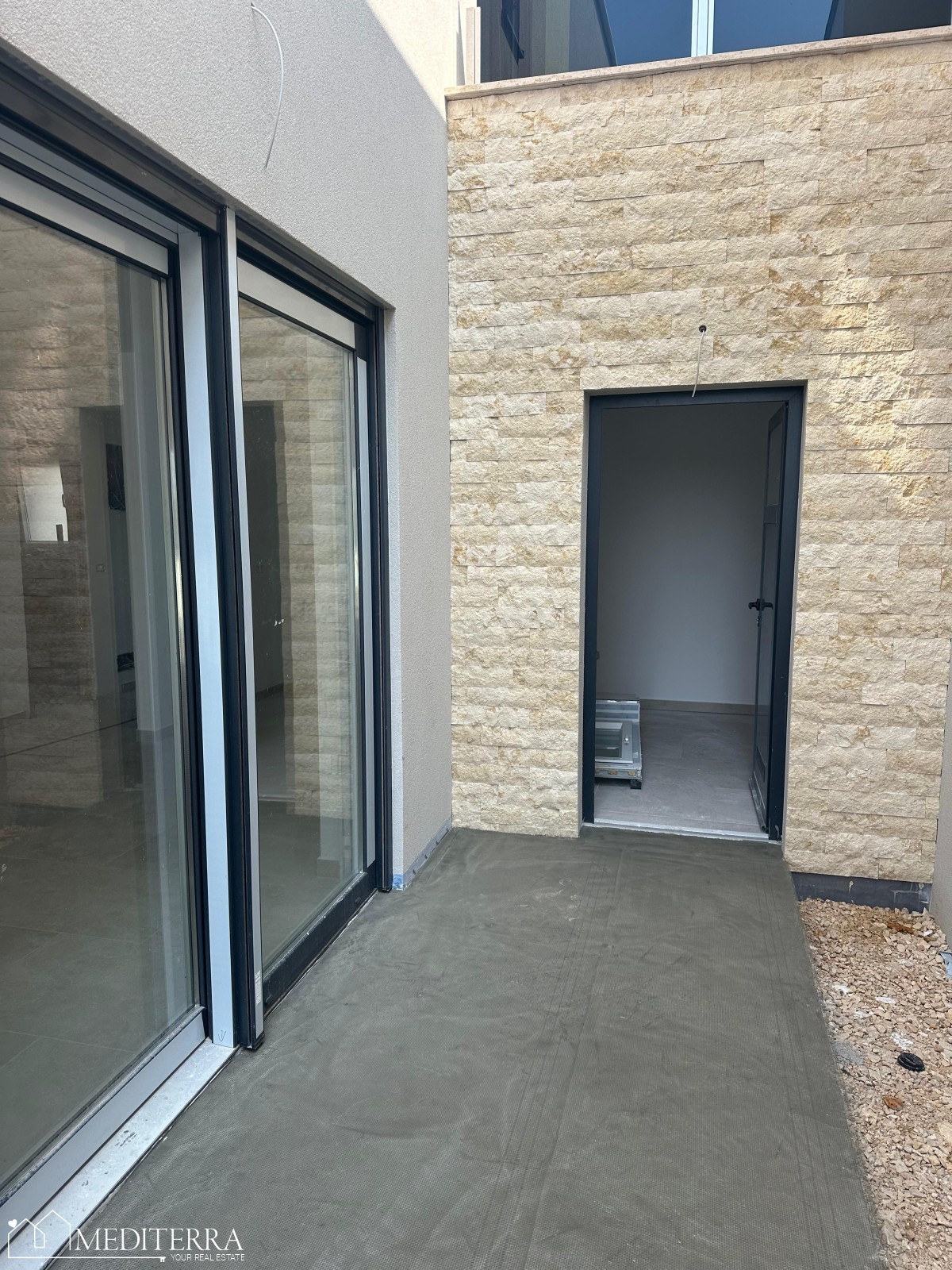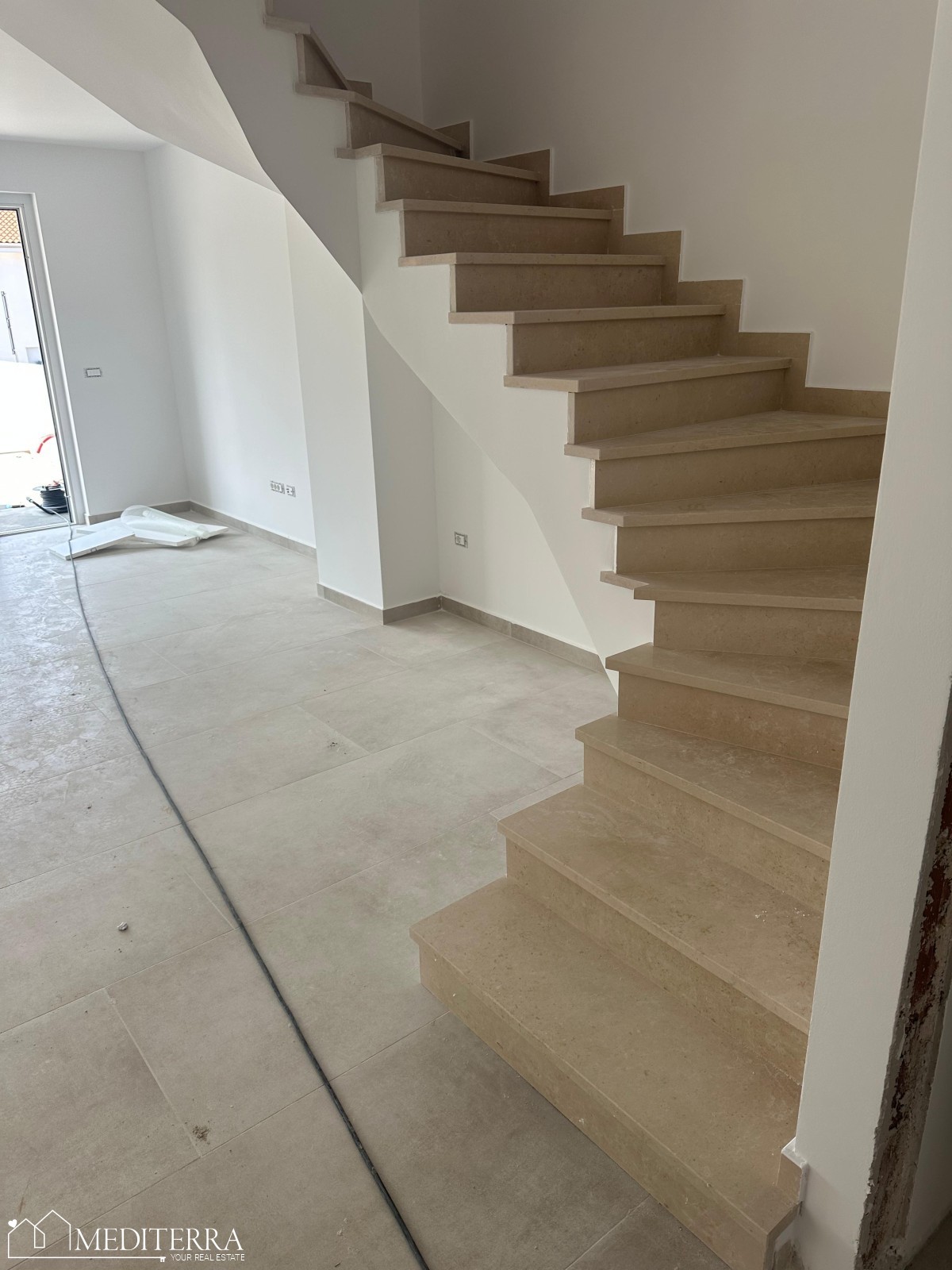 In ruhiger und angenehmer Lage, ideal für Familienleben oder Urlaub, steht ein Reihenhaus zum Verkauf, das sich über zwei Etagen erstreckt. Das Haus verfügt über drei Schlafzimmer, ein geräumiges Wohnzimmer mit Küche und Esszimmer, zwei Badezimmer, ein WC und einen zusätzlichen Abstellraum, der für praktischen Komfort im Alltag sorgt. Vor dem Haus befindet sich ein privater Parkplatz, und vom Obergeschoss aus bietet sich ein wunderschöner Meerblick, der den Eindruck des mediterranen Ambientes abrundet.
