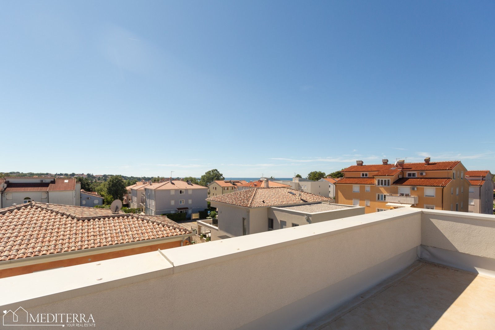 An apartment of 53.80 square meters on the first floor near Novigrad is for sale. The apartment consists of one bedroom, bathroom, living room, kitchen and a roof terrace with a sea view of 55m2. The apartment has 2 parking spaces that are charged additionally (€15,000 + VAT).