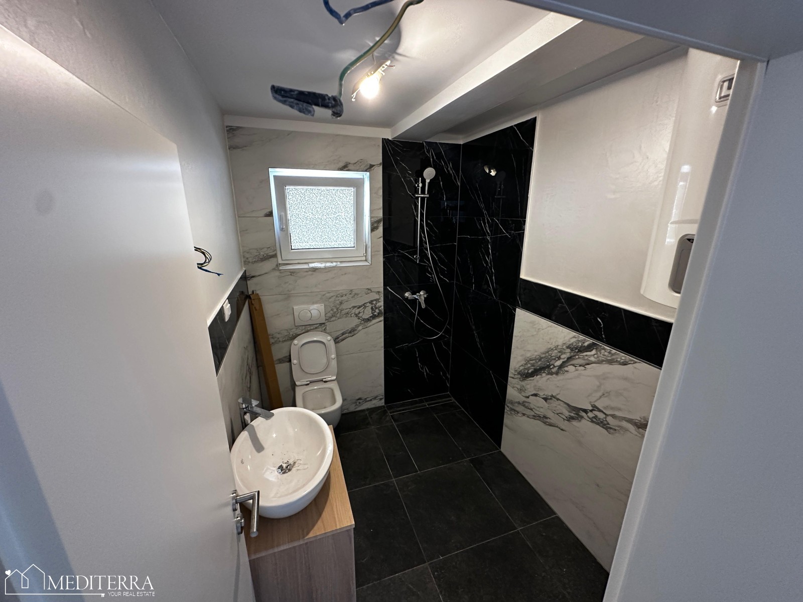 A completely renovated apartment of 36 m² is for sale, located on the ground floor of a small residential building. The apartment consists of a living room with a kitchen and dining room, a bedroom and a bathroom. It also has a spacious terrace of 20 m², ideal for outdoor living, as well as its own parking space in front of the building.
