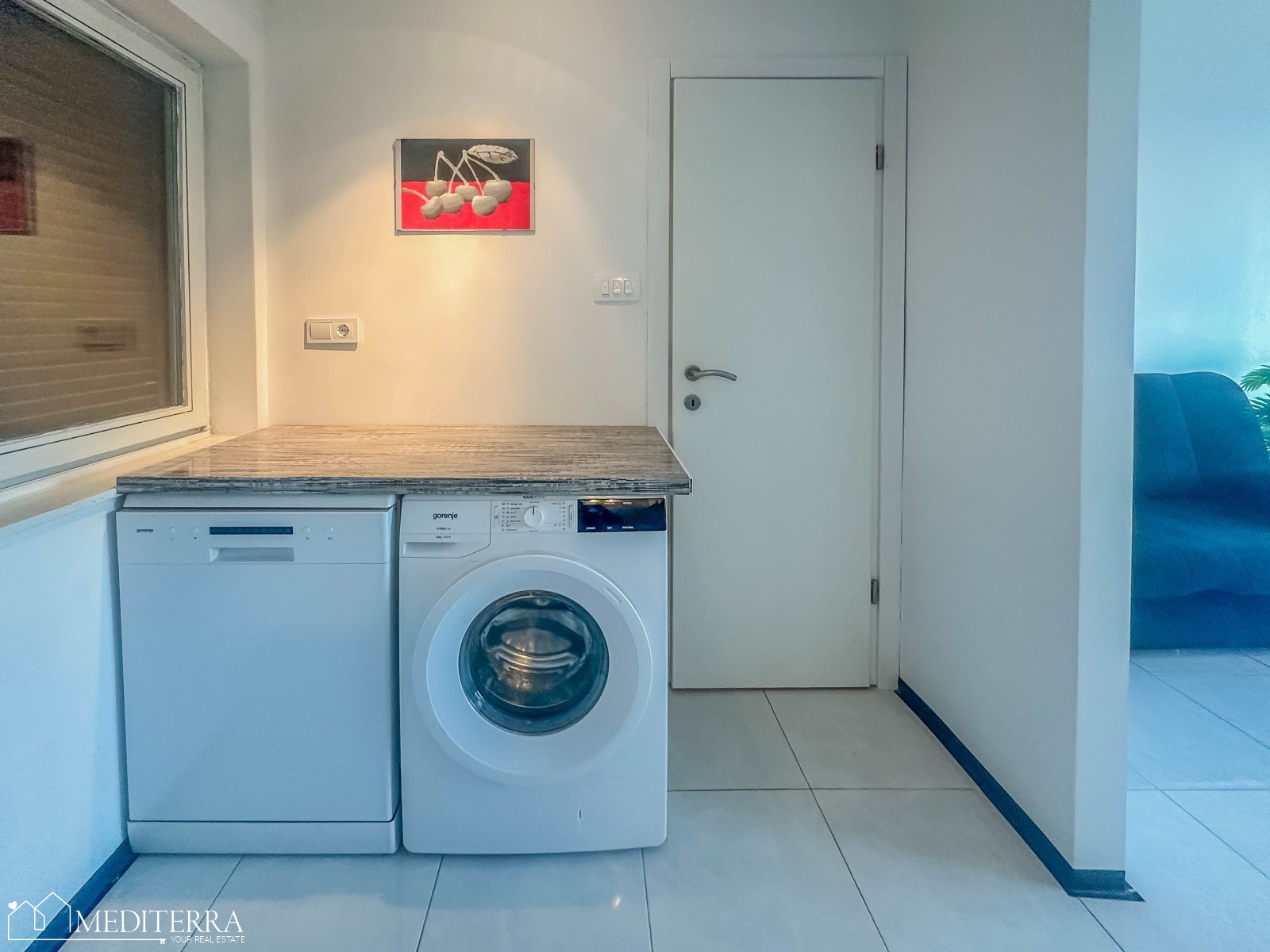 The apartment is located in a residential building, and extends through the 3rd floor and the gallery. The area of the apartment is 61.34 m2. On the 3rd floor there is a living room with a dining room, a kitchen, a bedroom and a bathroom. The living room offers an open view of the sea. Internal stairs lead to the gallery where there is another bedroom and a terrace. The terrace also offers a beautiful view of the sea. Heating is regulated by air conditioning, electric heaters and a wood-burning stove. The apartment was practically completely renovated in 2020, including installations.